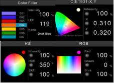 丰富的⾊纸系统,⽀持匹配热门的LEE和Rosco⾊纸(326个标准色纸,154个LEE系列、90个Rosco的E-Color系列、82个Rosco的SuperGel系列(可自定义40个色彩,10个白光色温))